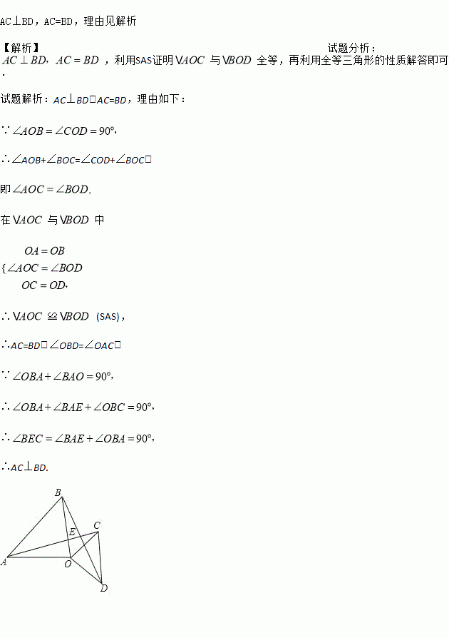 如图,OA=OB,OC=OD,∠AOB=∠COD=90°.