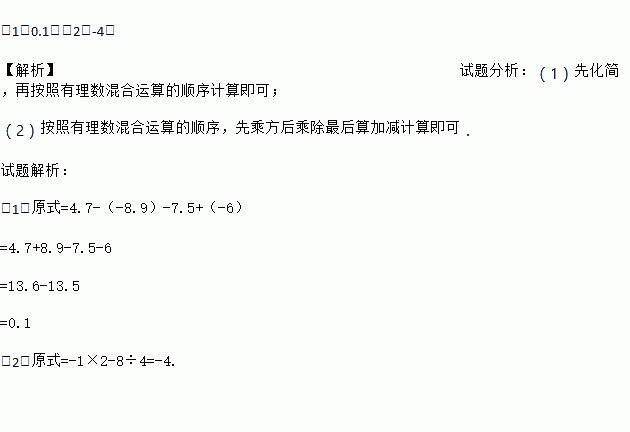 (1)4.7-(-8.9)-7.5+(-6) (2)![]()