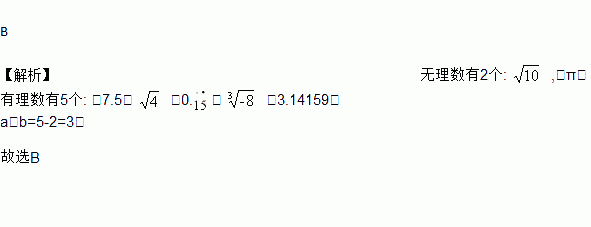 实数-7.5,,,-π,0.,,3.14159中,有理数的个数为a,无理数的个数为b,则a-b的值为( )