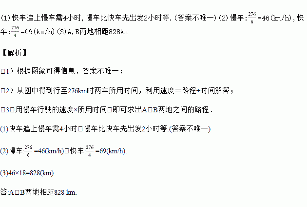 一慢车和一快车沿相同路线从A地到B地,所行驶的路程与时间的函数图象如图所示,试根据图象回答下列问题: