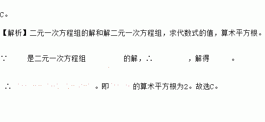 已知是二元一次方程组的解,则的算术平方根为【 】