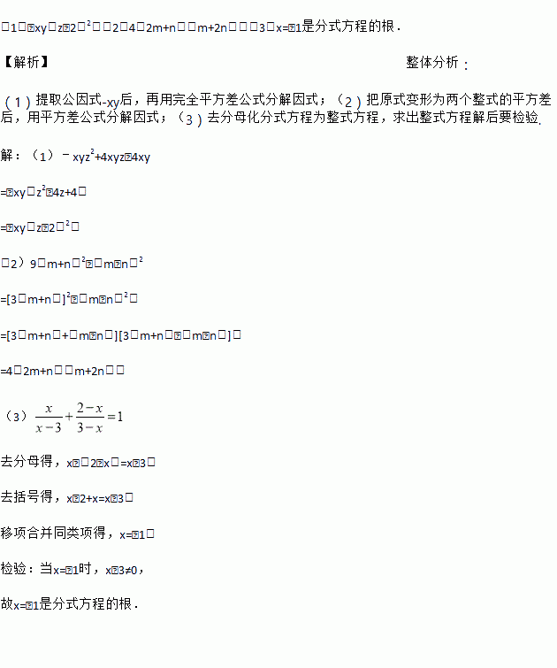 (1)因式分【解析】﹣xyz2+4xyz﹣4xy;