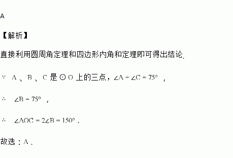 如图,A、B、C是⊙O上的三点,若∠A+∠C=75°,则∠AOC的度数为( )