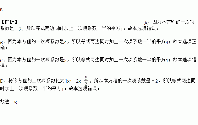 用配方法解下列方程,其中应在方程的左右两边同时加上4的是( )