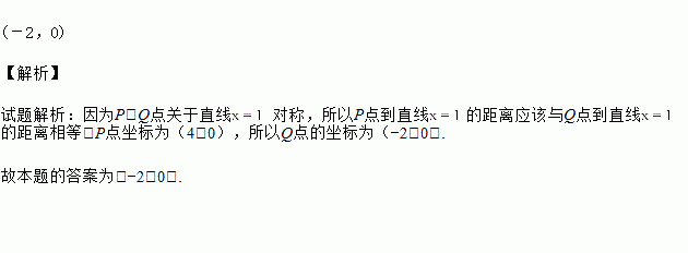 如图,若抛物线y=ax2+bx+c上的P(4,0),Q两点关于它的对称轴x=1对称,则Q点的坐标为________.