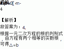 若关于x的一元二次方程有两个相等的实数根,则m的值是______ .