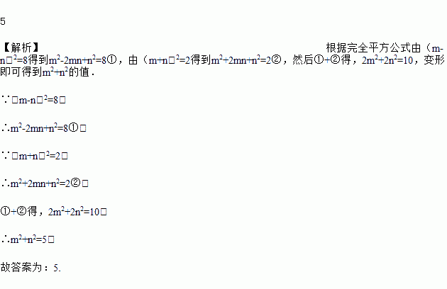 已知(m-n)2=8,(m+n)2=2,则m2+n2=____________.