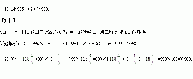 (1)999×(-15);