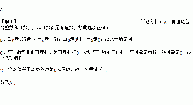 C. 有理数不是正数就是负数 D. 绝对值等于本身的数是正数