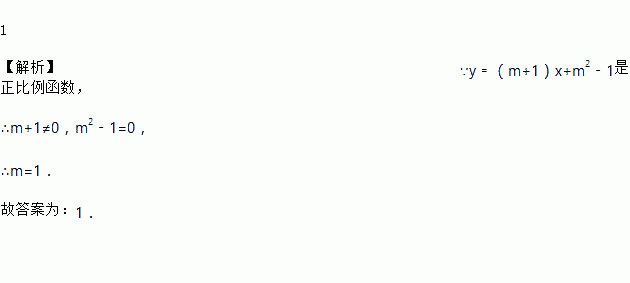 若函数y﹦(m+1)x+m2﹣1是正比例函数,则m的值为_____.