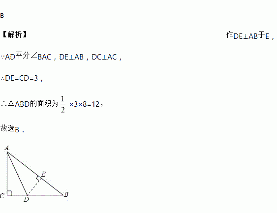 △ABC中,∠C=90°,∠A的平分线交BC于点D,如果AB=8,CD=3,则△ABD的面积为( )