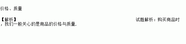价格、质量 【解析】试题解析:购买商品时,我们一般关心的是商品的价格与质量.