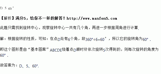 如图,这个图形是由“基本图案”绕着点________顺时针依次旋转________次得到的,则每次旋转的角度为________.