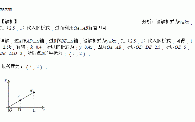 如图,在平面直角坐标系中,点A的坐标为(2.5,1),连接OA并延长至点B,使OA=AB,则点B的坐标是_____