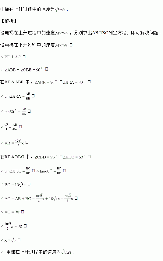 ,电梯匀速运行10秒可从B处到达D处,此时可观察到景点C,电梯再次以相同的速度匀速运行30秒可到达E处,此时可观察到景点![]()