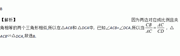 如图,下列各式能使ΔACB∽ΔDCA的是( )