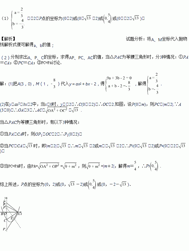 (2)连接AC,设点P是y轴上任一点,若以P,A,C三点为顶点的三角形是等腰三角形,求P点的坐标.