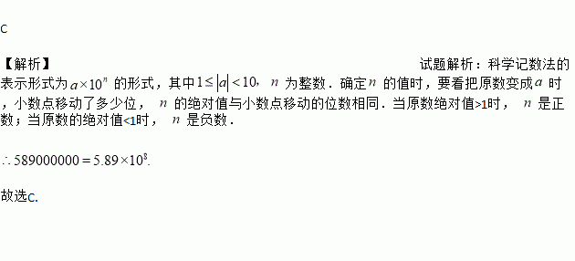 A. 589×106 B. 58.9×107 C. 5.89×108 D. 0.589×109