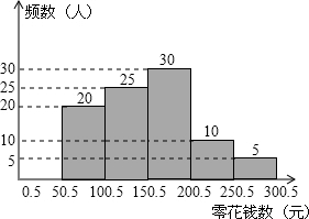 未成年人思想道德建设越来越受到社会的关注、某青少年研究机构随机调查了某校100名学生寒假花零花钱的数量(钱数取整数元),以便引导学生树立正确的消费观,根据调查数据制成了如下的频数分布表(部分空格未填),某校100名学生寒假花零花钱数量的频数分布表: