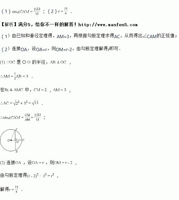 一圆柱形排水管的截面如图所示,已知排水管的半径为,水面宽为.由于天气干燥,水管水面下降,此时排水管水面宽变为,求水面下降的高度.