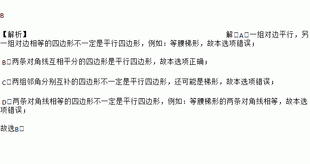 B. 两条对角线互相平分的四边形一定是平行四边形