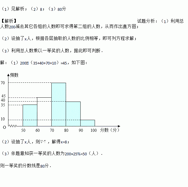 (3)比赛共设一、二、三等奖,若只有25%的参赛同学能拿到一等奖,则一等奖的分数线是多少?