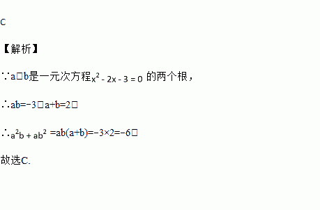 已知a、b是一元二次方程x2-2x-3=0的两个根,则a2b+ab2的值是( ).