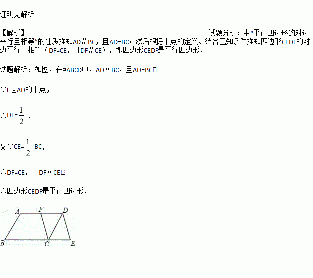 如图,在?ABCD中,F是AD的中点,延长BC到点E,使CE=BC,连接DE,CF.求证:四边形CEDF是平行四边形.