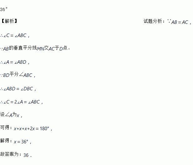 如图,在中, , 的垂直平分线交于点,若平分,则__________.