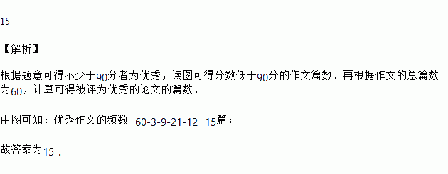 在“新课程创新论坛”活动中,对收集到的60篇”新课程创新论文”进行评比,将评比成级分成五组画出如图所示的频数分布直方图.由直方图可得,这次评比中被评为优秀的论文有______篇.(不少于90分者为优秀)