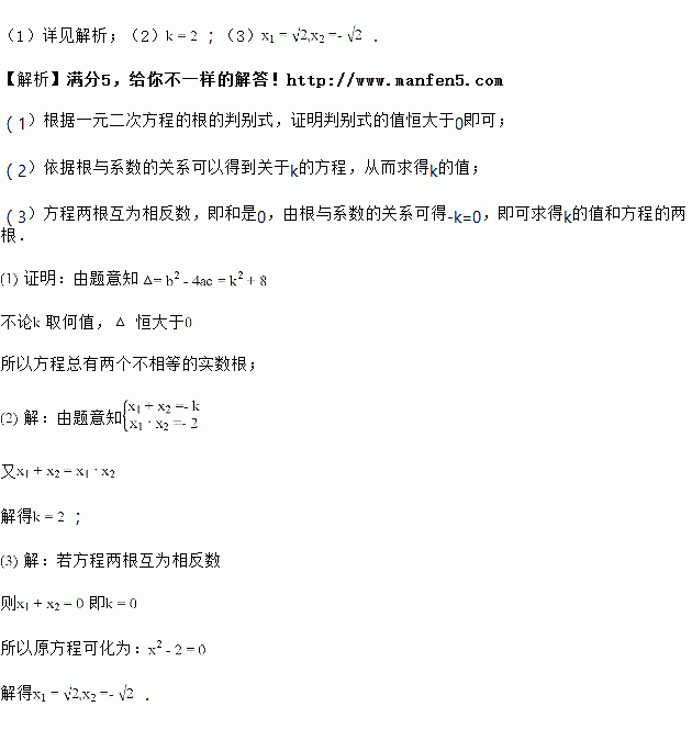 若方程两根互为相反数,求这两个根.