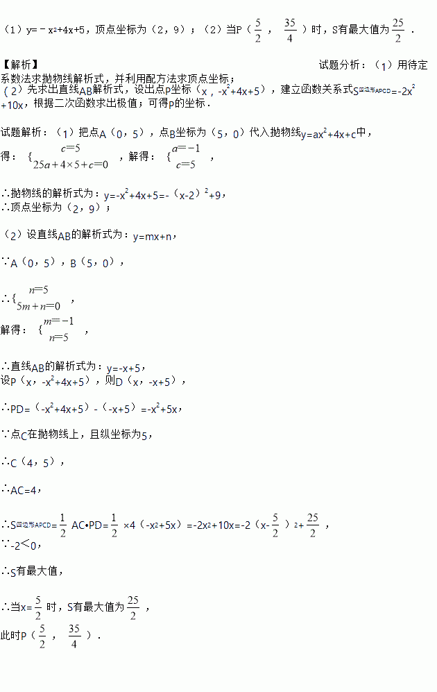 (2)过点A作AC平行于x轴,交抛物线于点C,点P为抛物线上的一点(点P在AC上方),作PD平行于y轴交AB于点D,问当点P在何位置时,四边形APCD的面积最大?并求出最大面积.
