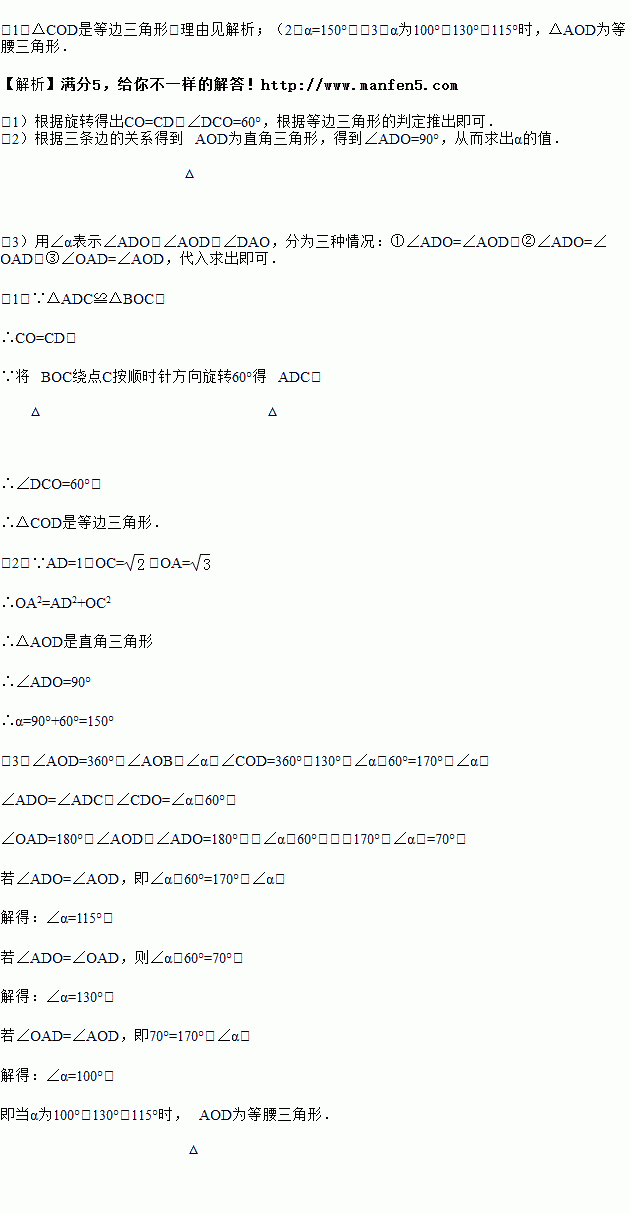 (3)探究:当α为多少度时,△AOD是等腰三角形?