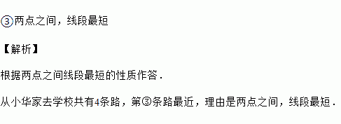 如下图,从小华家去学校共有4条路,第_____条路最近,理由是_____.