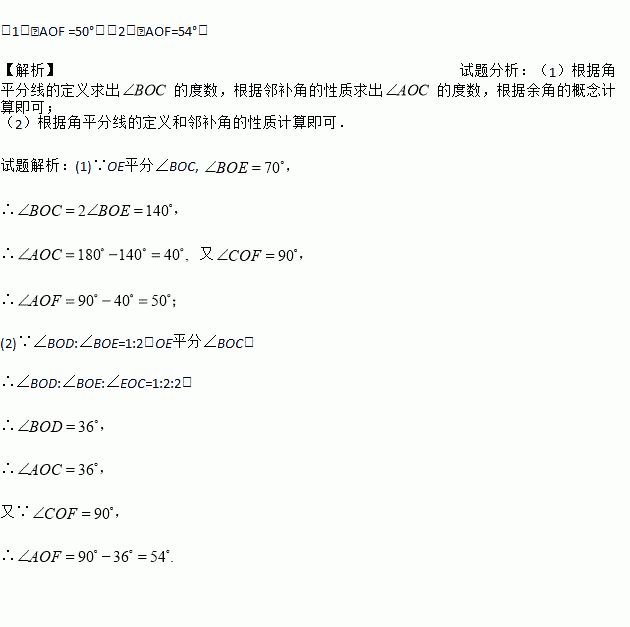 (2)若∠BOD:∠BOE=1:2,求∠AOF的度数.