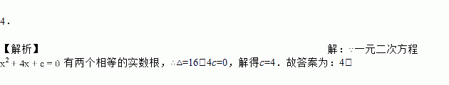 若一元二次方程有两个相等的实数根,则c的值是______.