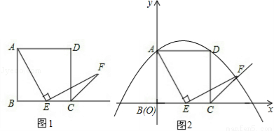 查看答案如图1,已知正方形ABCD的边长为1,点E在边BC上,若∠AEF=90°,且EF交正方形的外角∠DCM的平分线CF于点F.