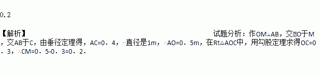 如图,水平放置的圆柱形排水管道的截面直径是1m,其中水面的宽AB为0.8m,则排水管内水的深度为_______m.