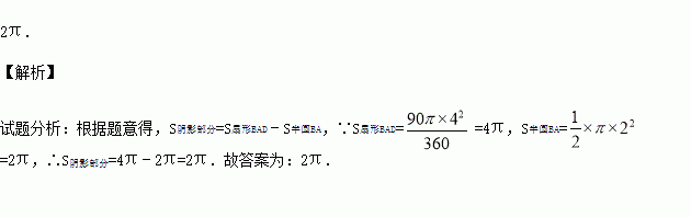 如图,在边长为4的正方形ABCD中,先以点A为圆心,AD的长为半径画弧,再以AB边的中点为圆心,AB长的一半为半径画弧,则阴影部分面积是 (结果保留π).