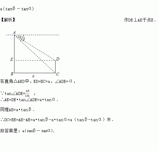 如图,两建筑物的水平距离为a,在A点测得C点的俯角为β,测得D点的俯角为α,则较低建筑物的高度为_____________________.