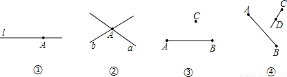 C. 图③中点C在线段AB上 D. 图④中射线CD与线段AB有公共点