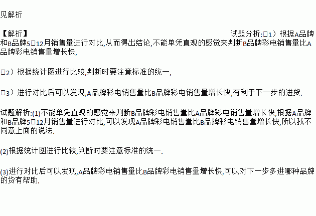 (1)有人认为B品牌彩电销售量比A品牌彩电销售量增长快.你同意这种观点吗?