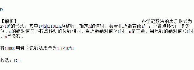 A. 13×103 B. 1.3×103 C. 13×104 D. 1.3×104