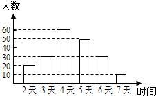(5)该市活动时间不少于4天的人数约是6000×(30%+25%+15%+5%)=4500人.