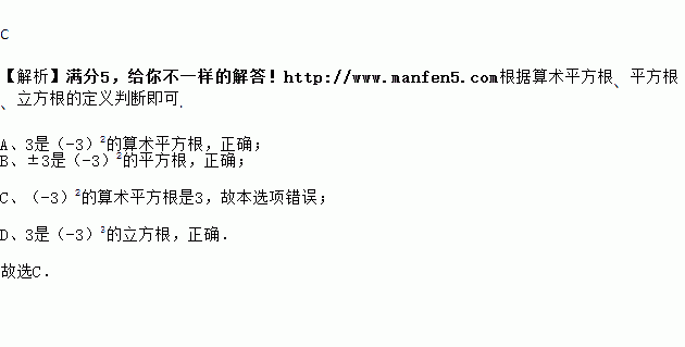 C. -3是的算术平方根 D. -3是的立方根