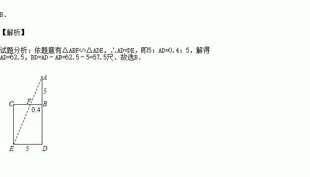 A.1.25尺 B.57.5尺 C.6.25尺 D.56.5尺
