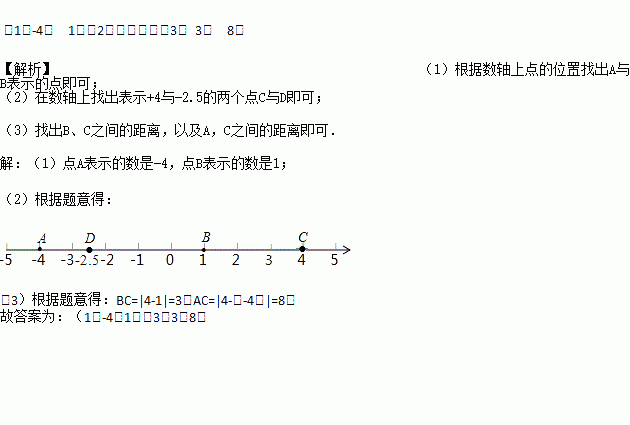 (2)在原图中分别标出表示+4的点C、表示