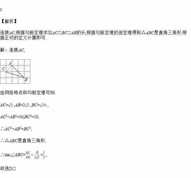 如图,在网格中,小正方形的边长均为1,点A,B,C都在格点上,则∠ABC的正切值是( )