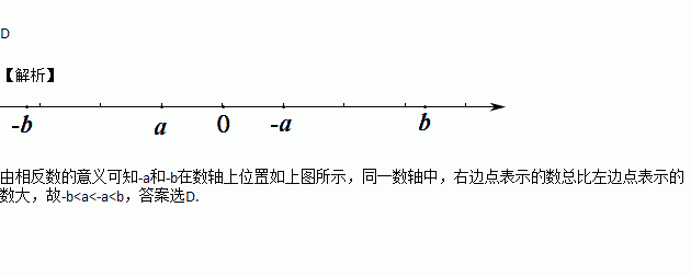 C. ﹣b<b<﹣a<a D. ﹣b<a<﹣a<b