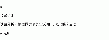 如果2x2y3与x2yn+1是同类项,那么n的值是 ( )